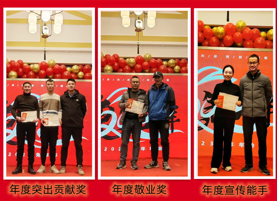 趙總致辭后,公司為2022年度表現(xiàn)優(yōu)異的團(tuán)隊和個人進(jìn)行了表彰。人才是公司生存和發(fā)展之本。公司發(fā)展的每一步都離不開每個協(xié)普人的努力和付出。本年度公司共評選出三名優(yōu)秀員工——陶?;顒?、徐金鳳,“2022年度突出貢獻(xiàn)獎”——張傳東、桂佳俊,“2022年度敬業(yè)獎”——陳阿龍,“年度宣傳小能手”——宋玉秋;“協(xié)普年度出差達(dá)人”——胡金龍,“年度最具成長力員工”——王傳銀,“5S進(jìn)步團(tuán)體”——技術(shù)部、車間鉚焊班,“質(zhì)量進(jìn)步團(tuán)體”——質(zhì)量部,“協(xié)普奉獻(xiàn)獎”——劉庭玉。