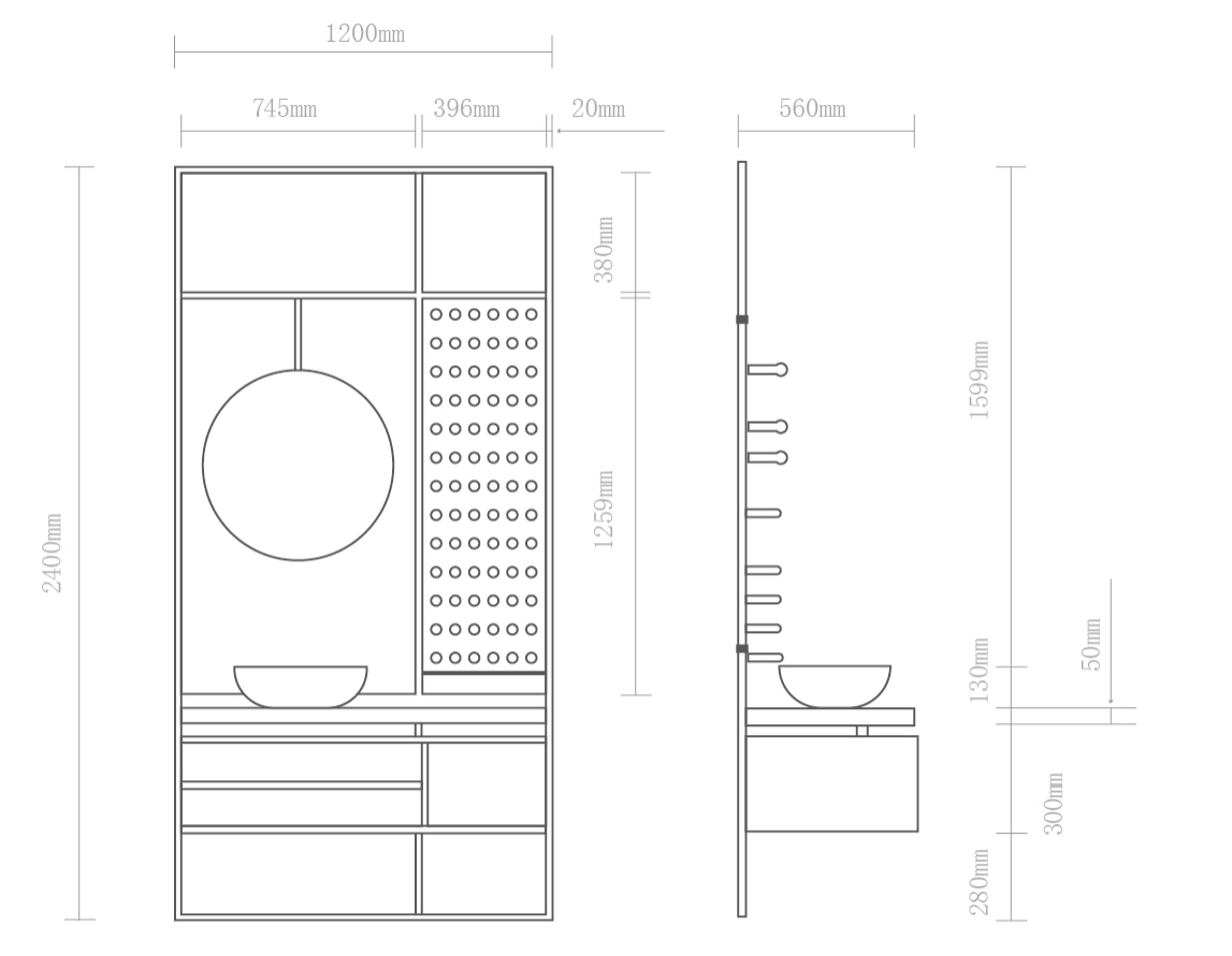 尺寸:1200x560x2400 (mm) (可定制)